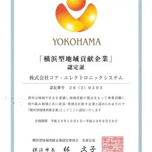 「横浜型地域貢献企業」の継続更新において、認定証を取得致しました。
